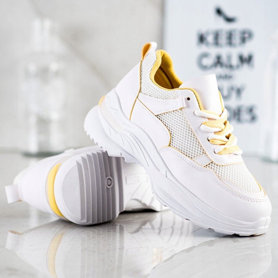 Detaljer: SHELOVET Bekväma vita sneakers gul