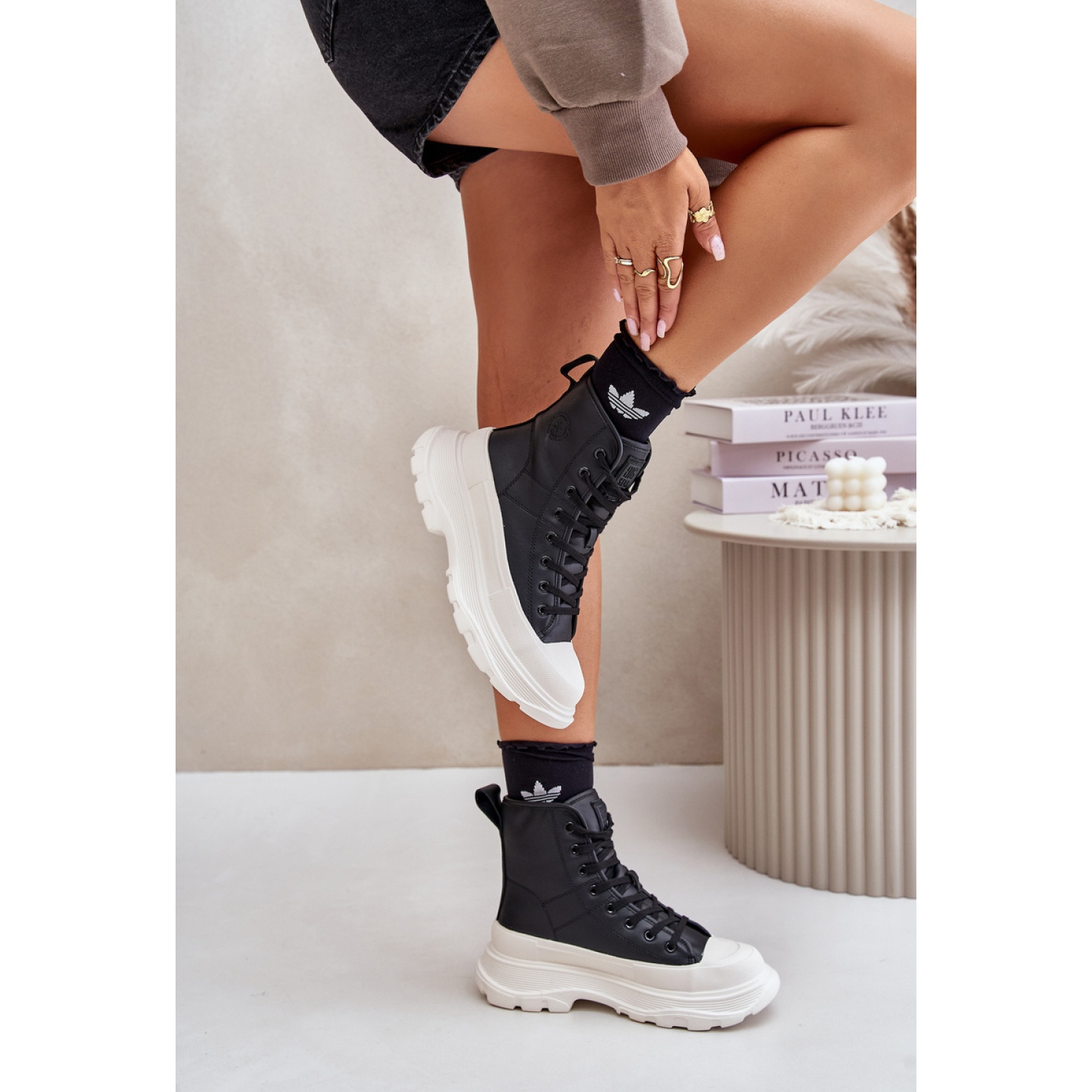 Sneakers har utformats för komfort. Interiören som är isolerad med en trevlig fårskinnrock ger värme, och den snörda låset gör att du perfekt kan matcha foten. Deras höga övre når 14 cm ger skorna en fashionabla karaktär, och den runda näsan ger dem subtilitet.