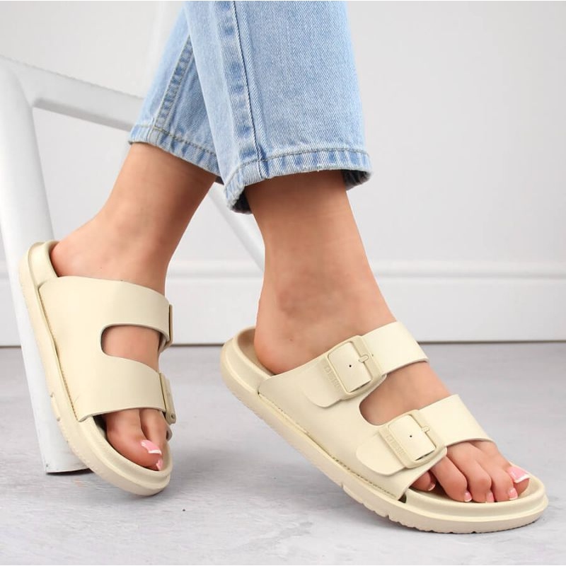 Upptäck komfort och stil tack vare skumflikar med stora stjärnspännen i INT2004C i en fashionabel beige skugga. Detta är det perfekta valet för både vardagsbruk och för sommarsolbad eller pool. Tillverkade av lätt syntetiskt material, dessa flip flops kombinerar modern design och bär komfort.