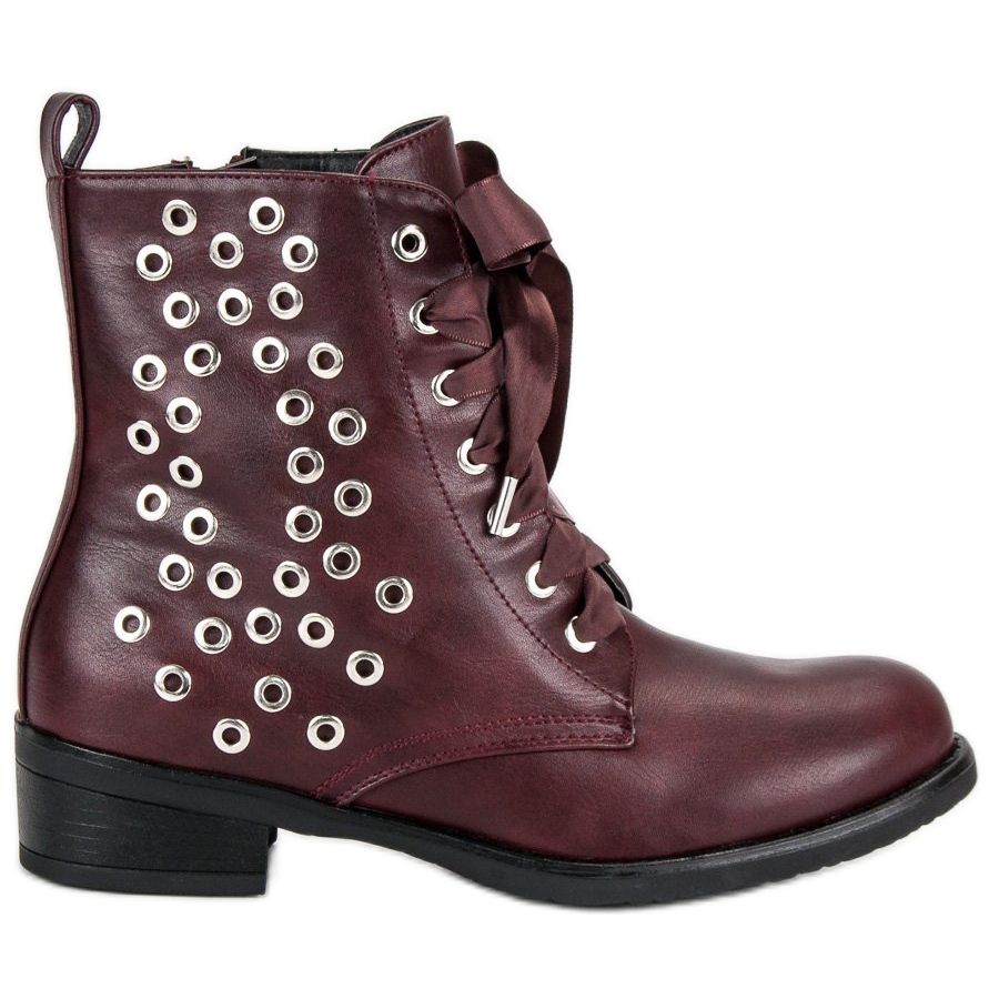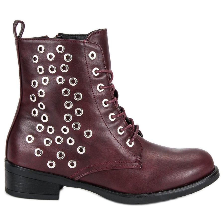 Den 4 cm höga hälen säkerställer bekvämt att bära, och snörningsförslutningen gör att den kan anpassas till alla typer av fot. Vinröda arbetarstövlar passar perfekt in i en avslappnad men ändå originell stil, vilket gör dem till ett utmärkt komplement till både jeans och klänningar.