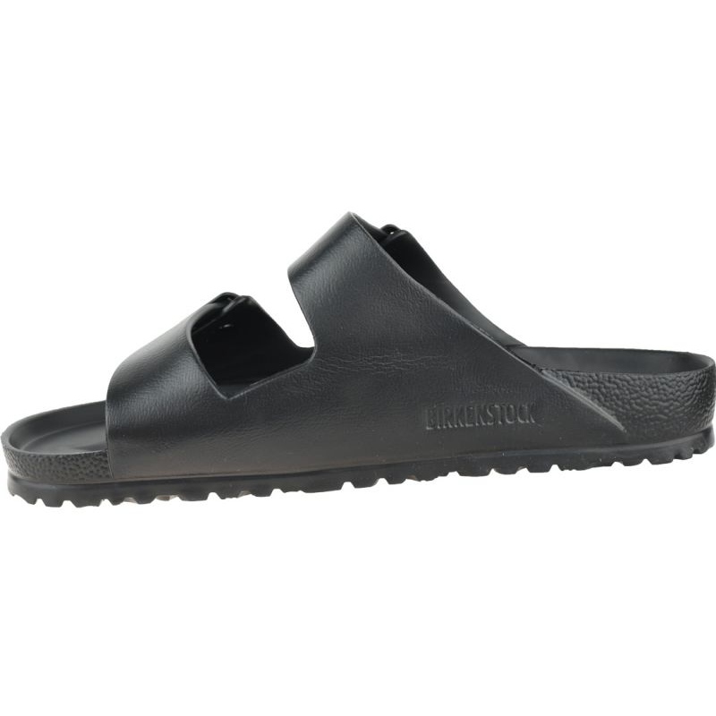 Birkenstock Arizona Eva 129423 Flip Flops - en klassiker av komfort i en modern upplaga. Svart, lätt och vattentät version av den ikoniska Arizona -modellen designad för personer med en smalare fot. Kombinationen av en ergonomisk insole som stöder den tvärgående bågen, en dämpande, multi -skiktkonstruktion och EVA -flexibla sulor ger dig tröst varje dag - i staden, på resor och under sommaraktiviteter.