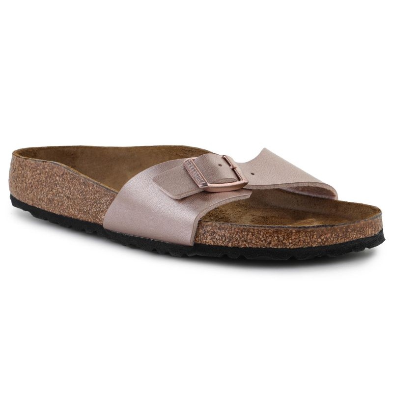 Birkenstock Madrid Copper W 1023927 flipflops designades för kvinnor som värdesätter inte bara aktuella trender utan också hög bärkomfort. Den justerbara remmen möjliggör individuell anpassning till fotens form, vilket garanterar stabilitet och komfort under hela dagen, oavsett planerade aktiviteter.