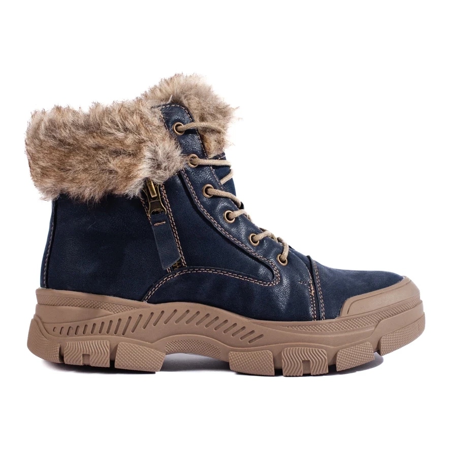 Blå kvinnors fångare med päls - varma, bekväma och snygga skor för svalare dagar. Perfekt för vardagliga, avslappnade och sportstyliseringar på hösten och vintern. Kombinationen av ekologiskt läder, en mjuk fårskinnrock och en solid sula säkerställer komfort, isolering och gott grepp.