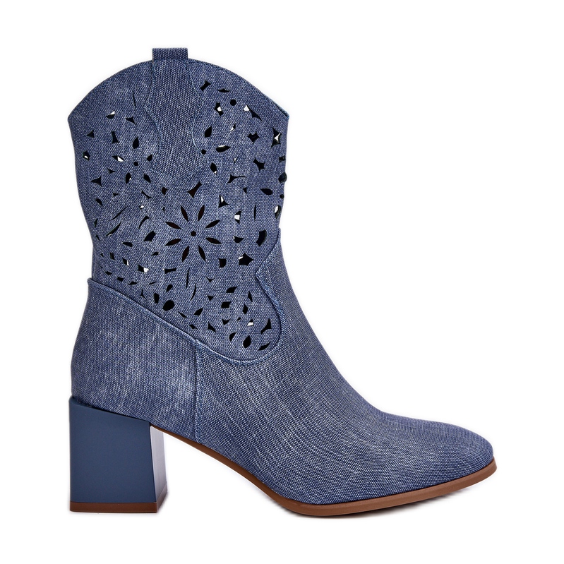 Information: Jezzi Blå Irvelame denim ankelboots med genombruten ovandel på block
