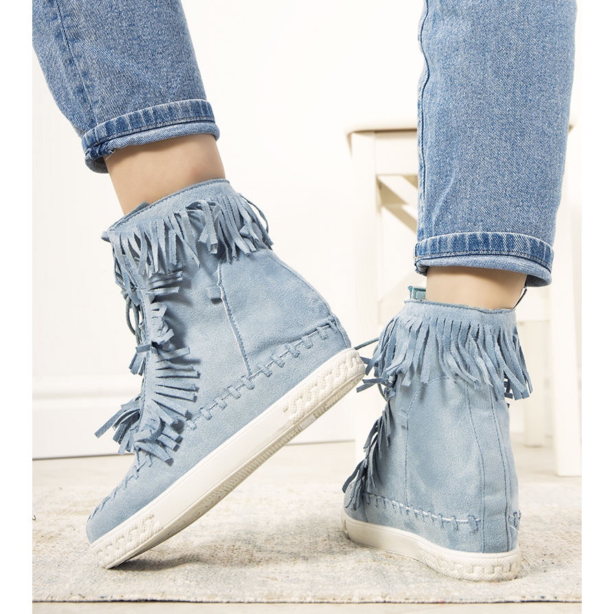 Ytterligare fransar ger LSI-801-modellen en unik karaktär, och den vita färgen på sulan i kombination med den blå överdelen kommer att skapa en original duo som säkert kommer att locka uppmärksamhet. Skornas höjd på 18,5 cm och en rund tå säkerställer komfort och full rörelsefrihet, vilket gör dem till det perfekta valet för alla tillfällen.