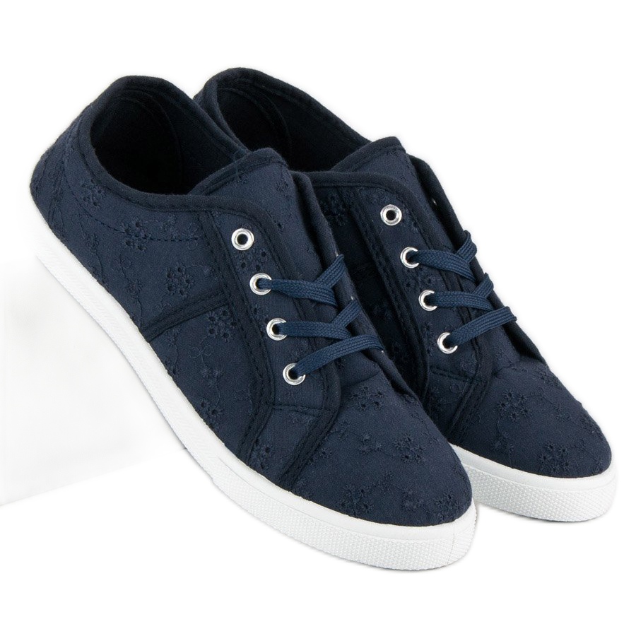 Upptäck komfort och stil med marinblå sneakers från Inna Marka! Dessa textilsneakers är det perfekta valet för kvinnor som värdesätter både komfort och moderiktigt utseende. Tack vare sin låga höjd och runda tå ger de rörelsefrihet och perfekt passform till foten.
