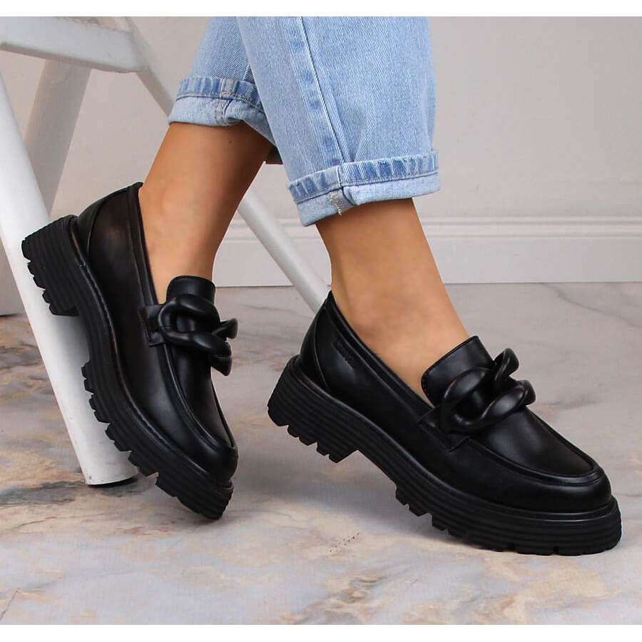 Detaljer: Black Big Star LL274580 högklackade loafers med kedja svart