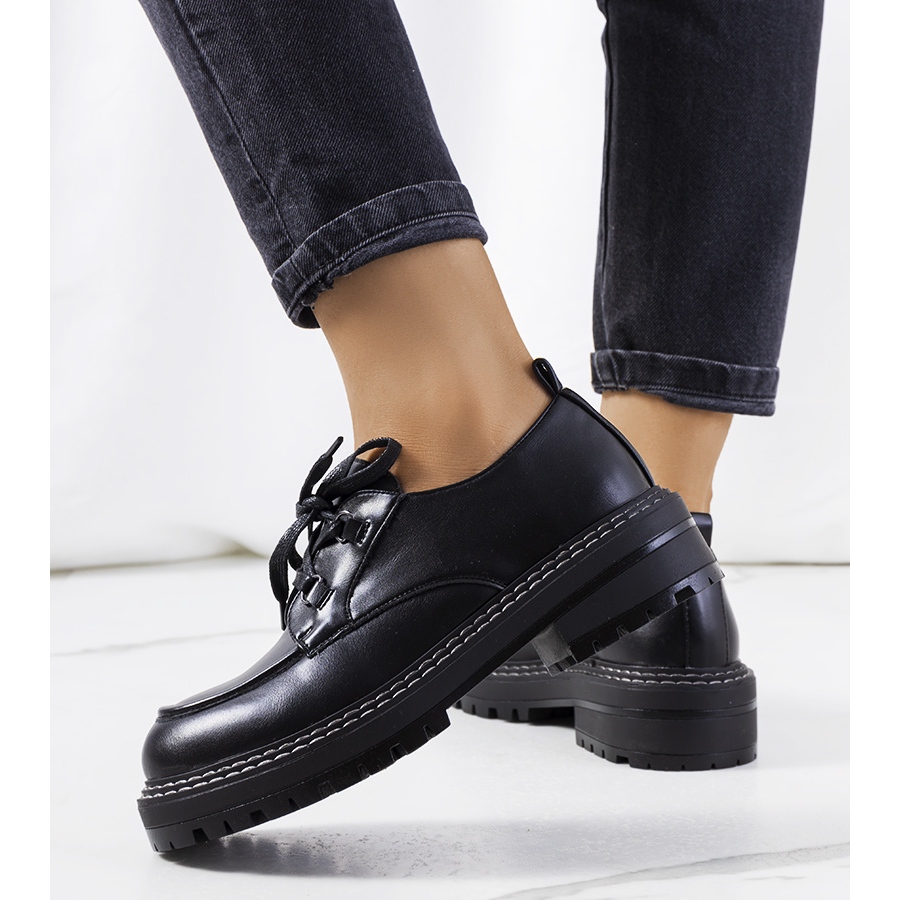 Dessa skor har en låg höjd (10,5 cm), och deras iögonfallande svarta färger gör att de matchar perfekt med olika stilar – både avslappnade och mer eleganta. Den 4,5 cm höga gummisulan garanterar stabilitet och komfort när du går.