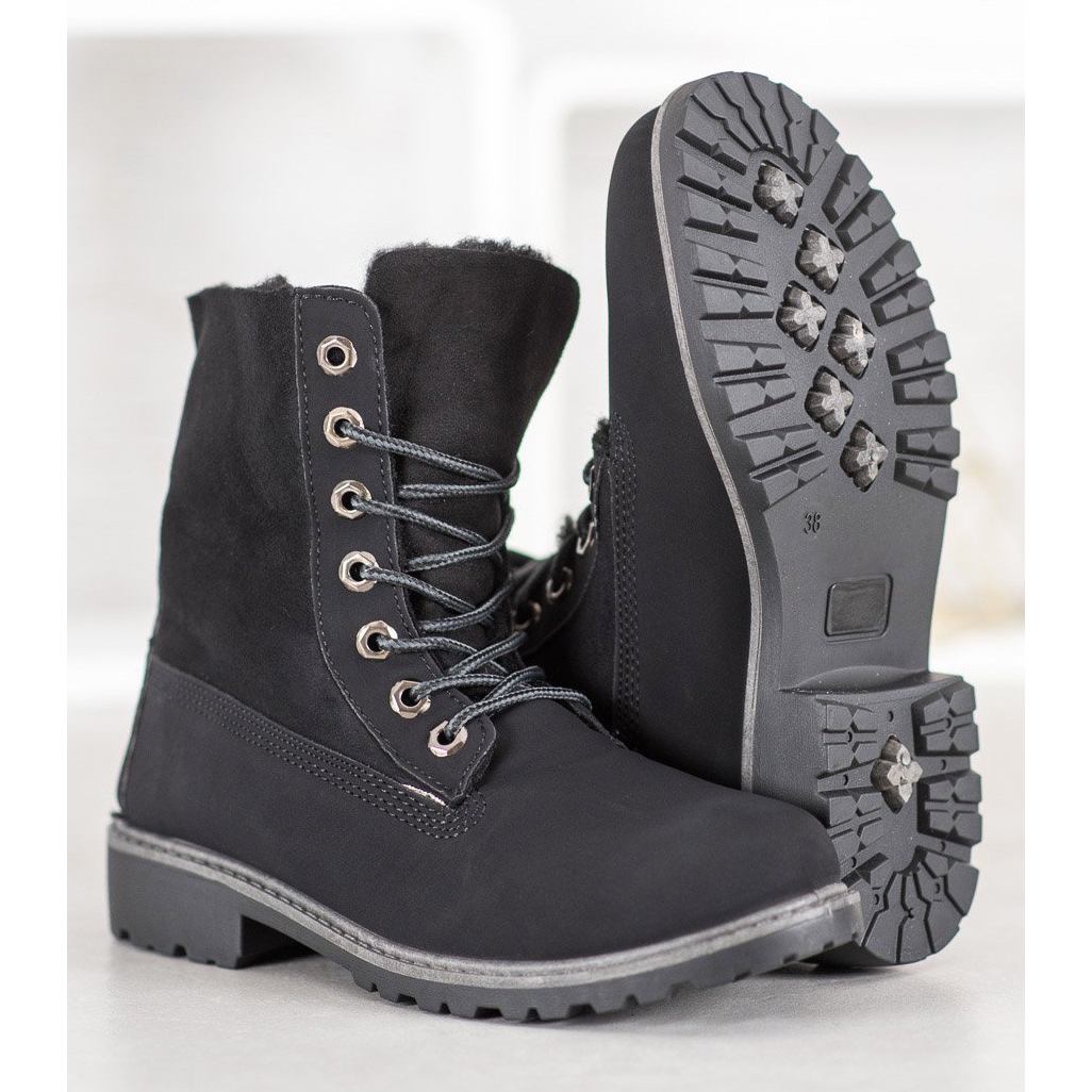 Svarta SHELOVET Trappers är ett perfekt val för höst/vintersäsongen för kvinnor som värdesätter stil och komfort. Unna dig lite elegans och funktionalitet genom att välja dessa unika ankelboots!