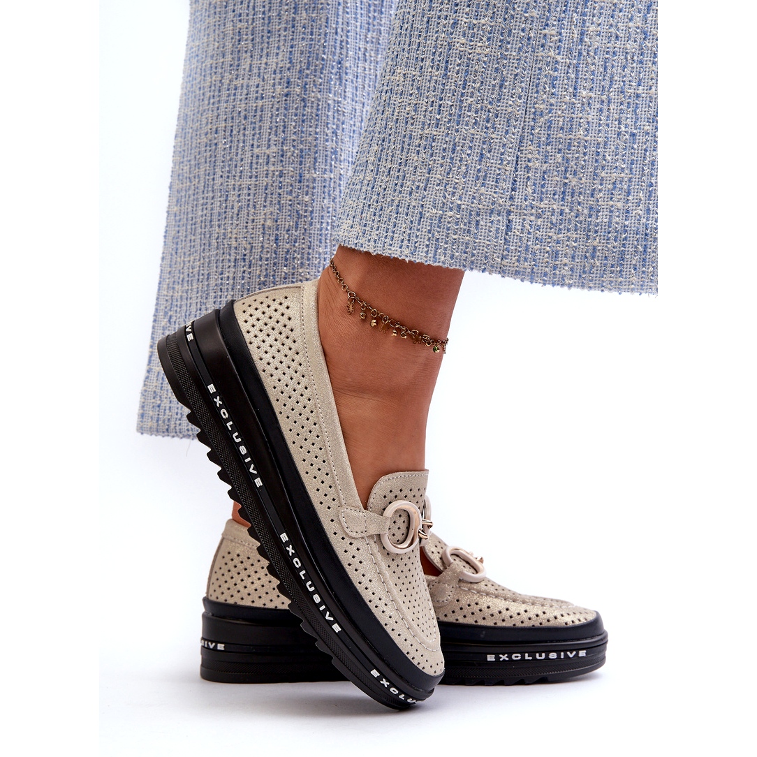 Detaljer: Blanka lädermockasiner för kvinnor på plattformen med dekoration S.Barski LR750 guld gyllene