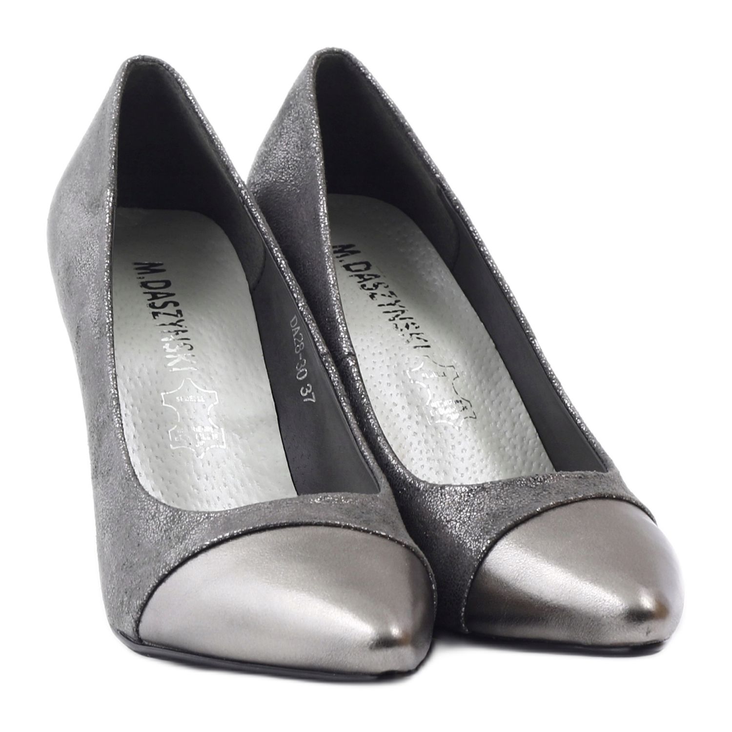 M.Daszyński DA28 glänsande pumps är ett elegant val för kvinnor som vill kombinera komfort med en moderiktig look. Dessa eleganta skor, som erbjuds i en grå nyans som subtilt skimrar med silver, kommer säkerligen att väcka uppmärksamhet. Silverspetsen ger dem en unik karaktär, vilket gör dem till ett perfekt komplement till både vardags- och kvällsstilar.