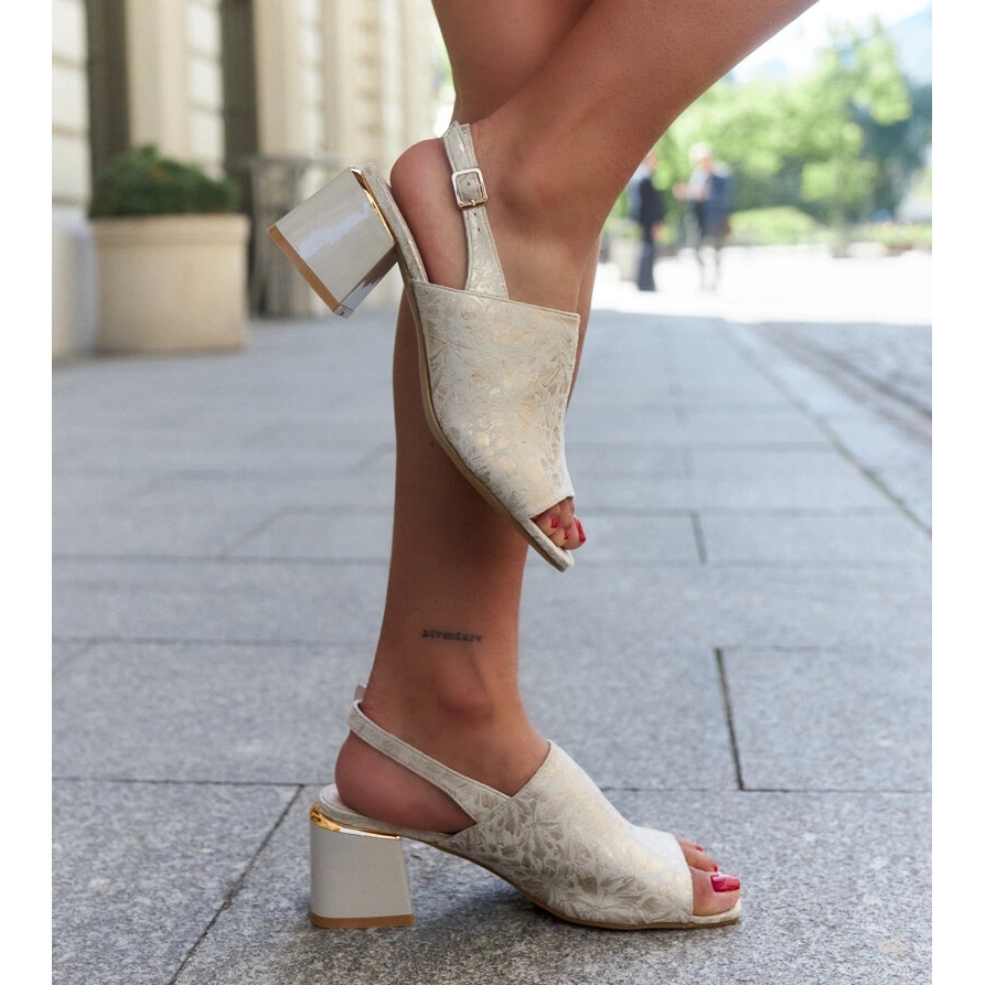 Sandaler på ett kvarter med en Nuna -läderinsats i en beige nyans är ett utmärkt val för sommardagar och kombinerar komfort och fashionabla design. Deras klassiska form i en hög, stabil häl med en höjd av 5,5 cm gör dem inte bara bekväma, utan också lovar elegans i varje stilisering. Tillverkade av ekologiskt mocka läder ser dessa sandaler inte bara vackra, utan tar också hand om miljön. Läderinsatsen ger hög bärande komfort, och spännet gör att du enkelt kan passa på foten.