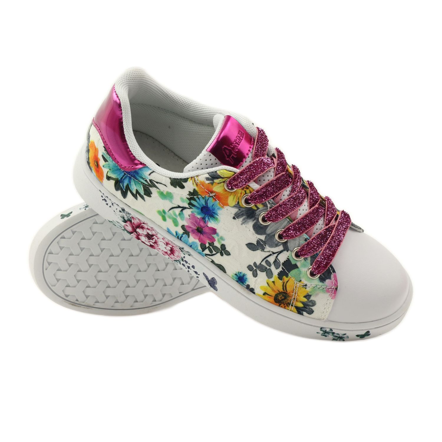 Detaljer: American Club Blommiga amerikanska sneakers med läderinlägg rosa mångfärgad gul blå vit