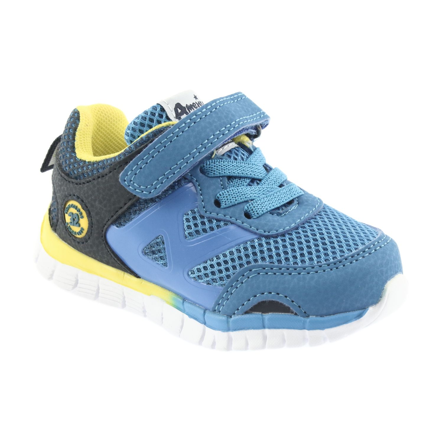 Här är de perfekta sportskorna för aktiva pojkar - American Club ES35-skor i marinblått och blått med gula accessoarer. Dessa skor är skapade med de små i åtanke och kombinerar modern design med funktionalitet, vilket gör dem till ett utmärkt val för varje dag.