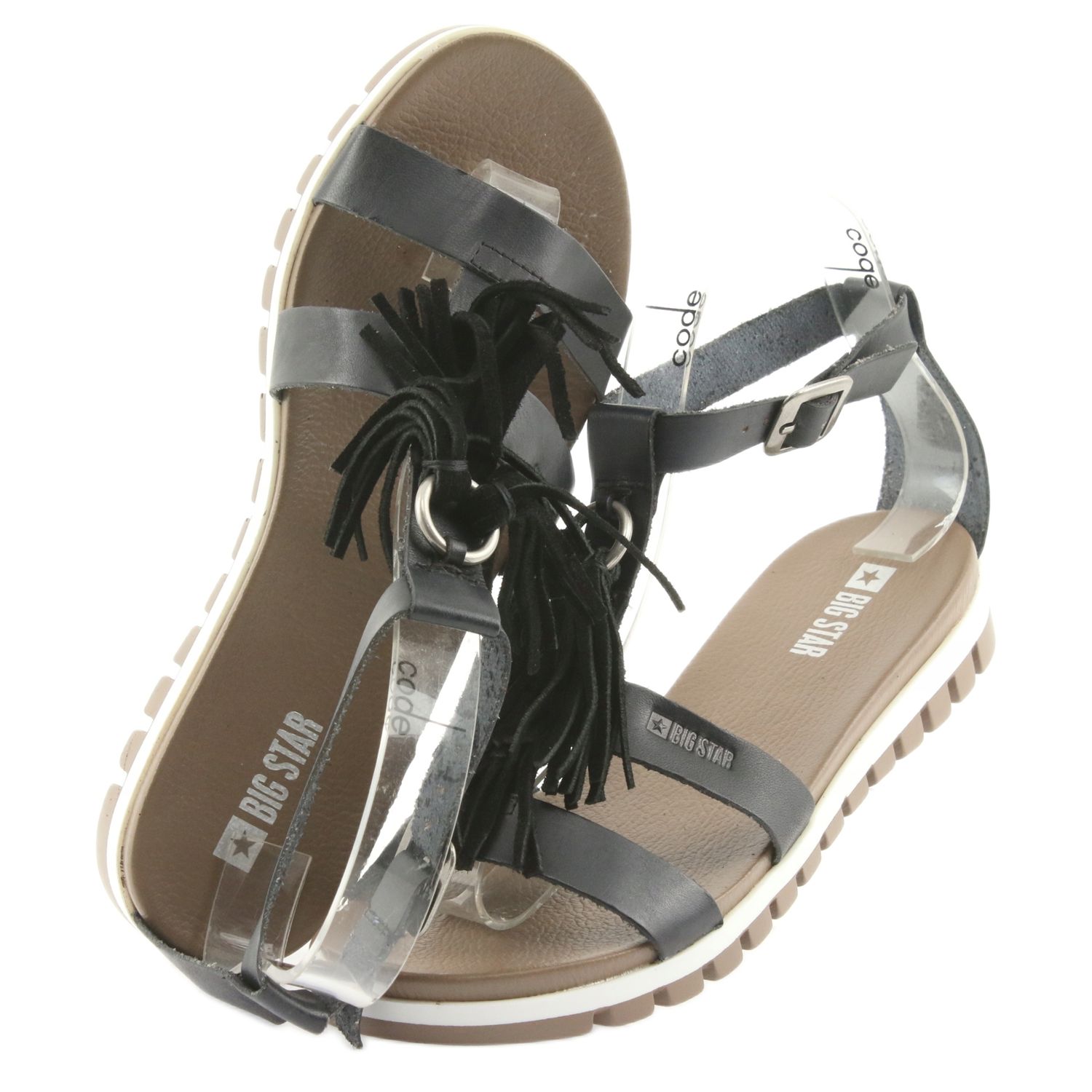Detaljer: Big Star Boho 274956 Kvinnors lädersandaler med fransar svart