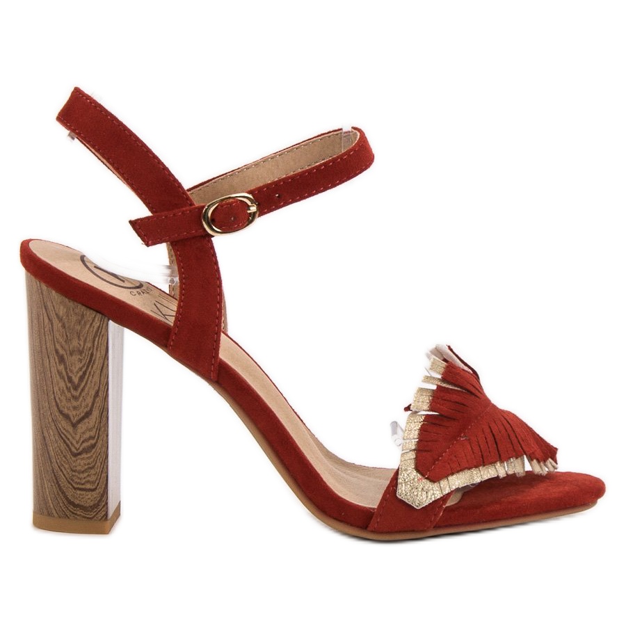 Bli förvånad över modet och komforten som erbjuds av dessa unika röda högklackade sandaler. Gå på en oförglömlig resa i boho-stil med märket Kylie!