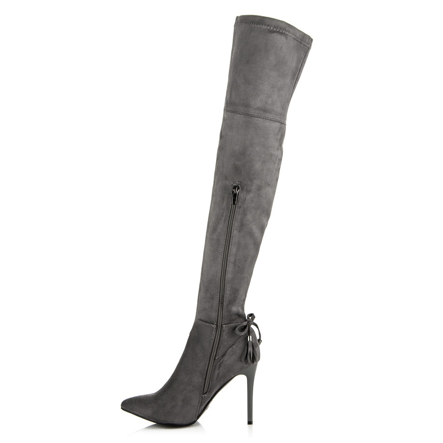 Höjden på ovandelen över knäet och den runda tån är egenskaper som säkerställer exceptionell bärkomfort och samtidigt framhäver figurens feminina fördelar. En 9 cm hög klack ger elegans, och stilettklacken gör varje steg till ett nöje. Stövlarna har ingen isolering, vilket gör dem till ett idealiskt val för vår och höst.