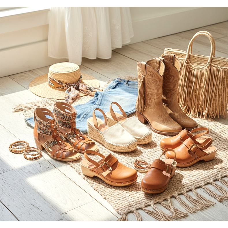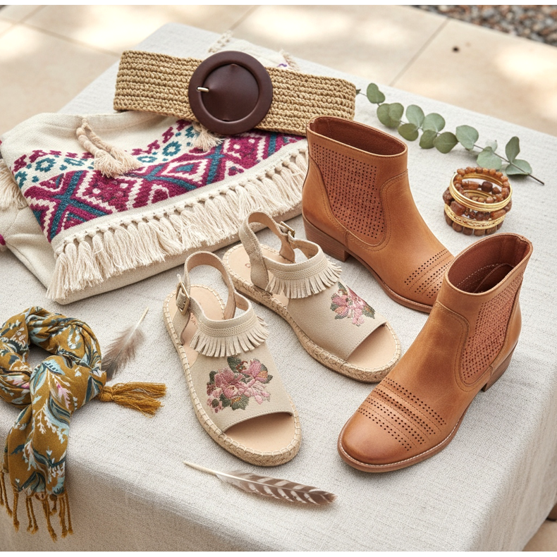 Skor är grunden för boho-styling. Flera kategorier av skor är särskilt nära förknippade med denna estetik.