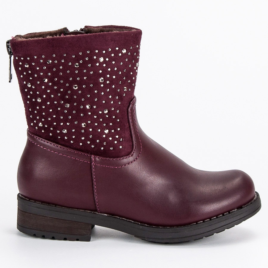 Eleganta och fashionabla flickstövlar från Vinceza i en djup nyans av vinröd (röd). Den höga ovandelen dekorerad med glänsande kristaller ger dem en ungdomlig karaktär och subtil elegans. Dragkedjan gör den lätt att ta på och den mjuka innersulan säkerställer komfort under hela dagen. Tack vare lämplig isolering är de perfekta för höst- och vintersäsongen - de är perfekta som bekväma vardagsskor för skolan och för promenader.