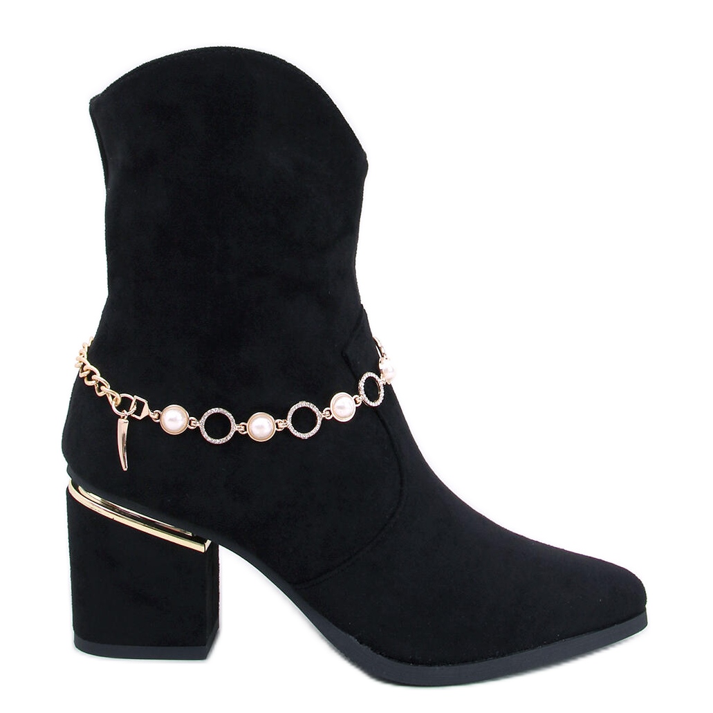 Bralin Black High Heels - Stylish Cowboy Boots med en dekorativ kedja