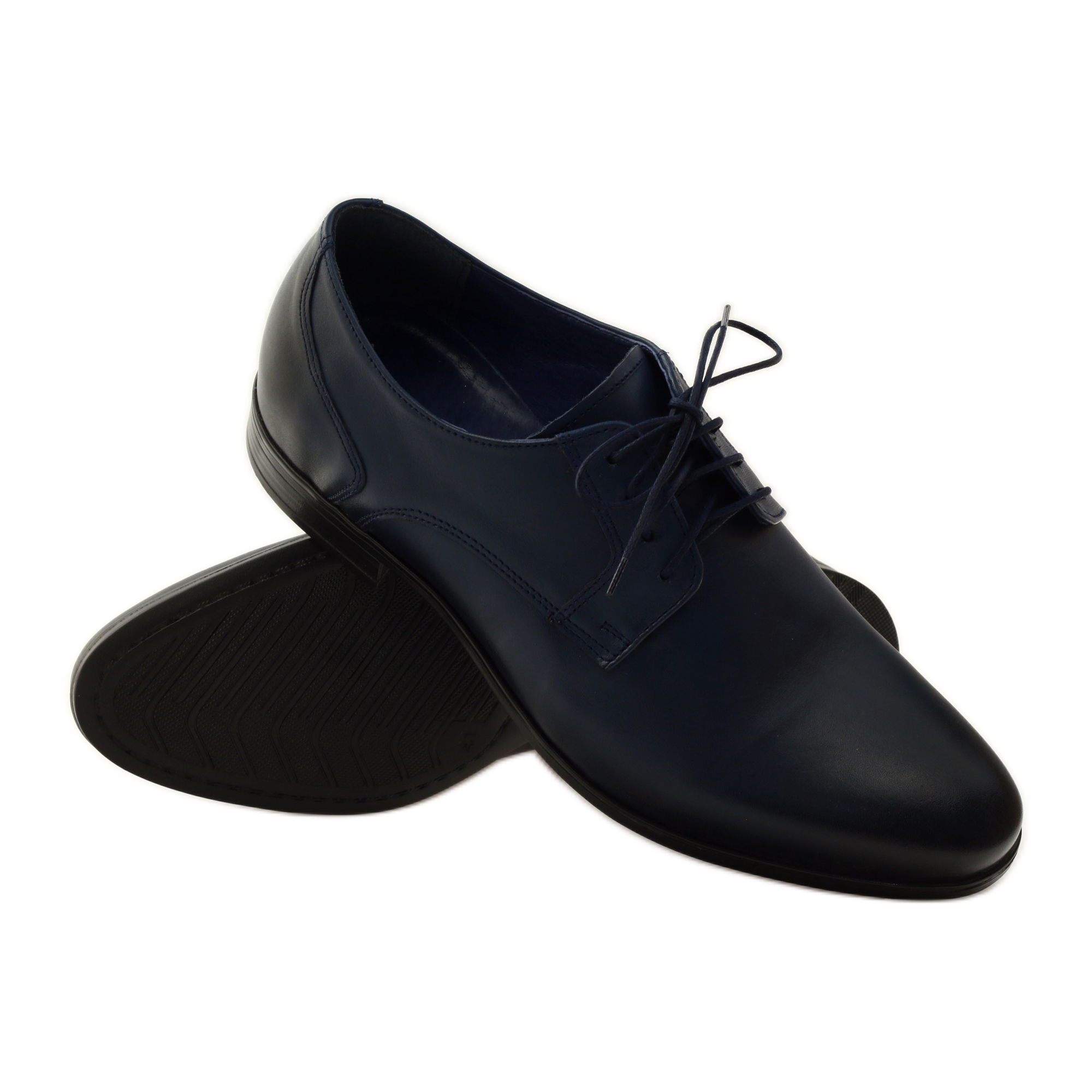 1628-modellen utmärks av en klassisk, rund tå och en bekväm snörning, vilket gör den enkel att ta på och anpassa efter individuella behov. Den marinblå färgen gör att skorna matchar perfekt med olika stilar – både för formella kontorskläder och för informella möten eller fester.