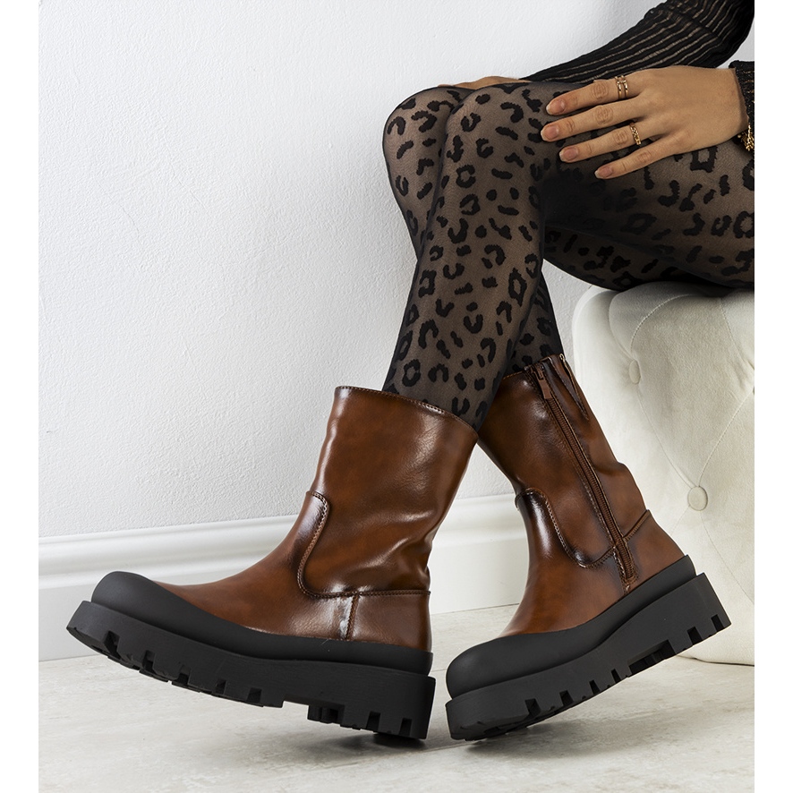 Den övre delen av skorna passar perfekt till benet, vilket betonar dess fördelar. Stövlarnas insida är avslutad med ett tunt material som säkerställer komforten att bära, även under längre promenader. Skornas höjd är 23,5 cm, och deras dragkedja gör den lätt att ta av och på.