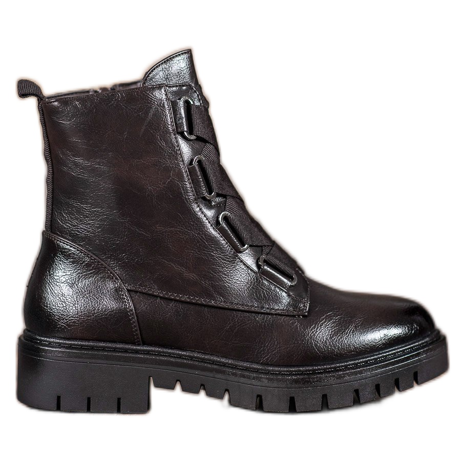 Brown Workers från M.Daszyński är en perfekt kombination av stil, komfort och funktionalitet som säkerligen kommer att tilltala varje kvinna. Dessa unika stövlar kännetecknas av en massiv design som inte bara fångar ögat, utan också ger exceptionell hållbarhet, perfekt för vardagliga utmaningar under svåra förhållanden.