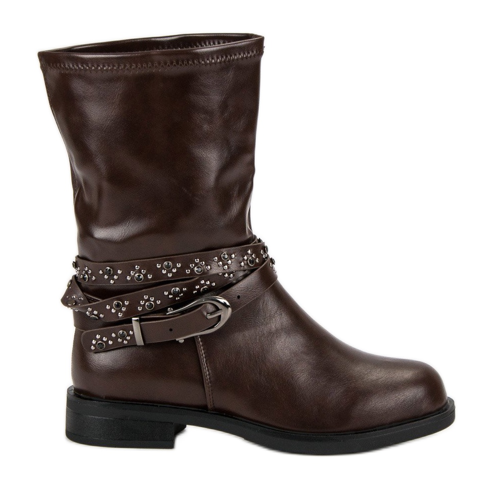 Small Swan Brown Workers kännetecknas också av detaljer som strass och ett dekorativt spänne, som ger dem karaktär och gör dem till en perfekt passform för rocktrender och avslappnade stiltrender. Tack vare den övre höjden på 23 cm och bredden på 38 cm passar dessa stövlar perfekt till fotleden utan att värma fötterna, vilket gör dem lämpliga för kallare dagar.