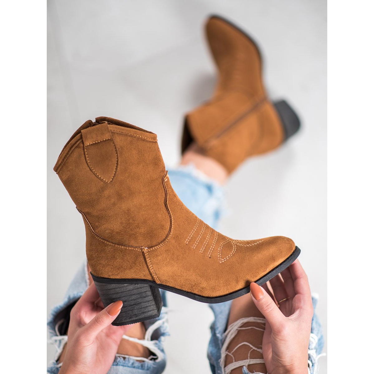 Super Mode cowboystövlar är gjorda av ekologiskt mockaläder och är miljövänliga och ger exceptionell bärkomfort. Ovandeln som når över vristen passar perfekt till benet och dragkedjan på insidan gör det lätt att ta på sig skorna. Intressant nog, trots stövlarnas cowboykaraktär, fokuserade tillverkaren på en delikat finish, vilket gör att cowboystövlarna ser extremt snygga ut.