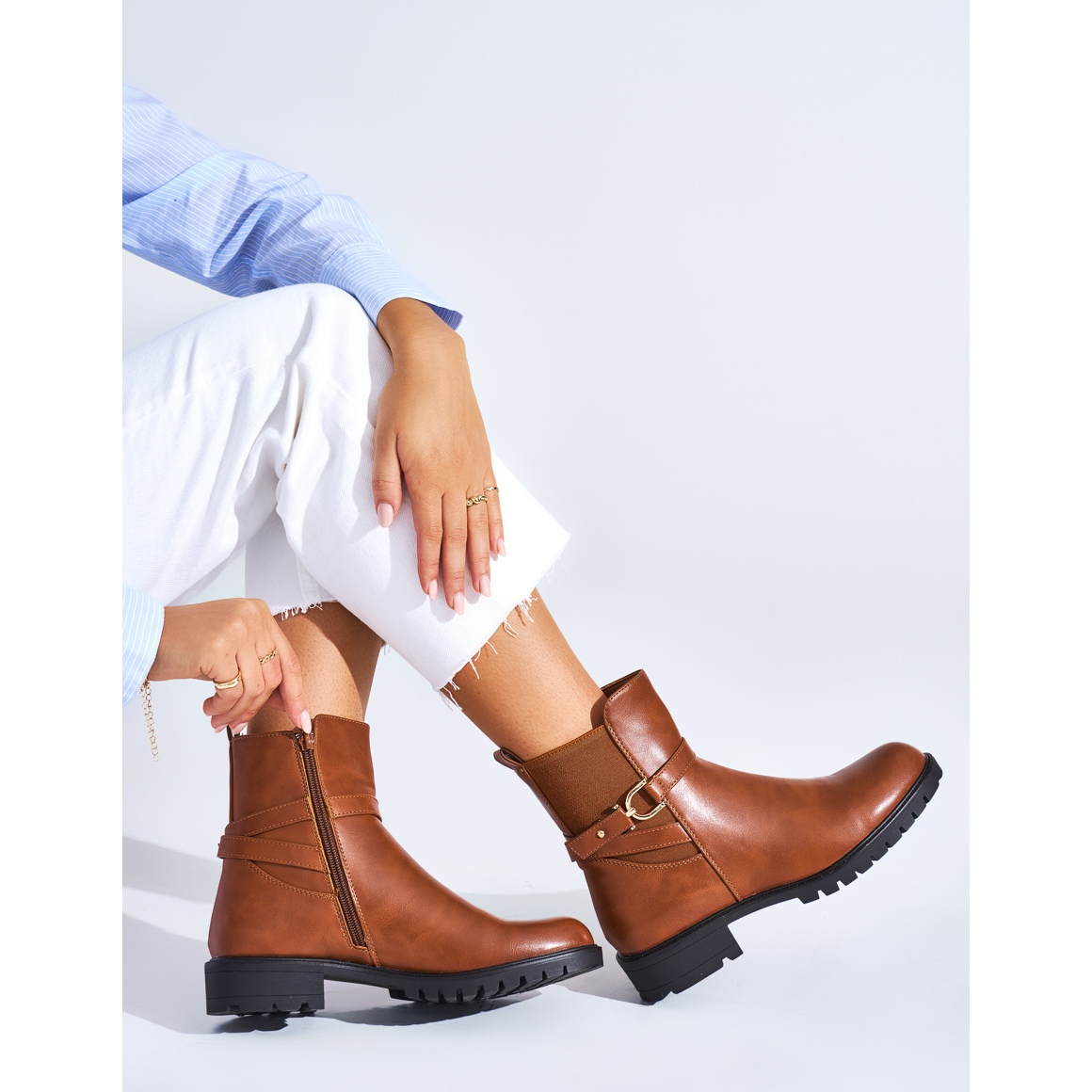 Byggd -in, Stivened Heel säkerställer stabilitet och komfort, och en slät plastsula garanterar att du kommer att känna dig säker vid varje steg. Tack vare en rund tå och en hög häl med en höjd av 3,5 cm kombinerar stövlar elegans med komfort, idealiskt lämpad för den avslappnade stilen.