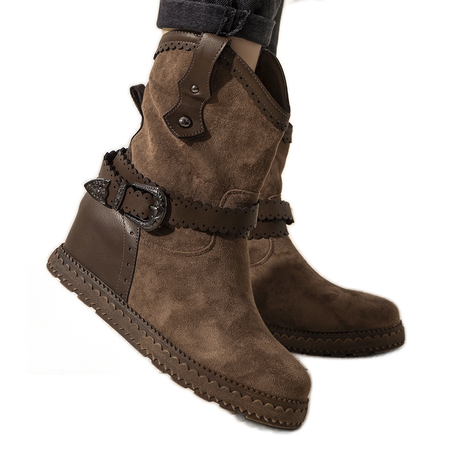 Detaljer: Bruna damstövlar med isolering på Sherry wedge