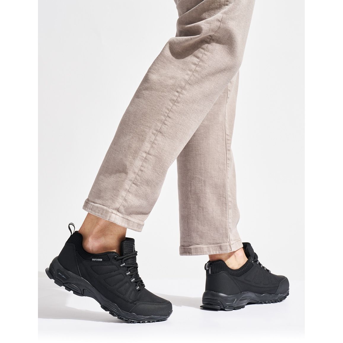 Skorna är gjord av ekologiskt läder och textilmaterial, vilket säkerställer utmärkt hållbarhet och komfort. Full näsa och förstyvad häl erbjuder stort skydd för fötterna under långa resor, och plastsula med slitbanan säkerställer stabilitet på olika ytor.