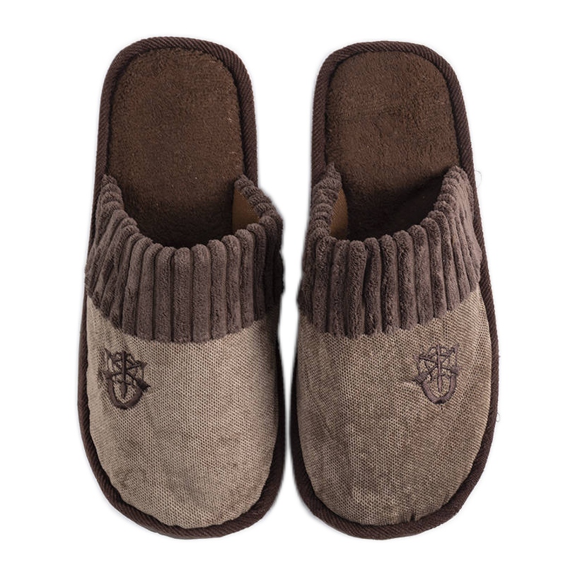 Dessa klassiska, bruna mäns tofflor (Model YF-51, tillverkarens färg: brun) har utformats med maximal komfort på svalare dagar. Tillverkad av högkvalitativa tyger är interiören färdig med en trevlig pekpäls, som effektivt värmer fötterna. Gummisulan säkerställer hållbarhet och god vidhäftning, och den låga hälen/plattformen med en höjd av 2,5 cm ger stabilt stöd. Enkel, äventyrlig design och rund näsa gör tofflorna universella och eleganta - perfekt för hemmet, för en gåva eller så bekväma skor för fjärrarbete.