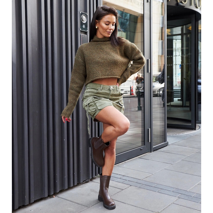 Brown High Boots dekorerade med Vicco Zircons - Elegans möter funktionalitet