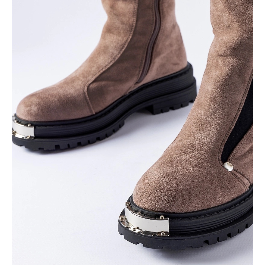 Bruna isolerade stövlar med en dekorativ Bologna -näsa - Model NC1306
