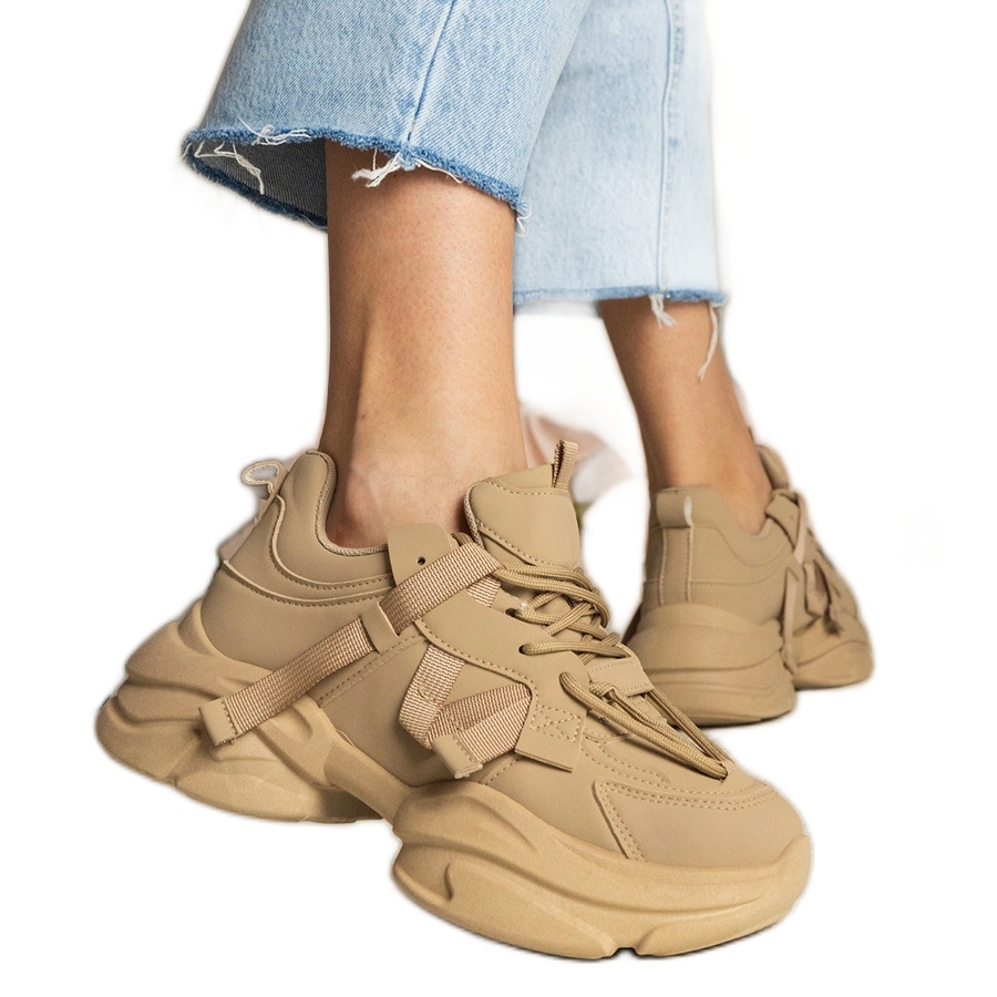 Detaljer: Bruna kvinnors massiva sportsneakers