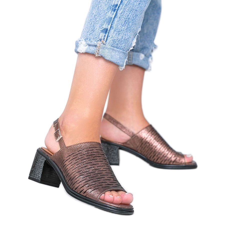 Detaljer: Bruna metalliska sandaler på Cusi -stolpen
