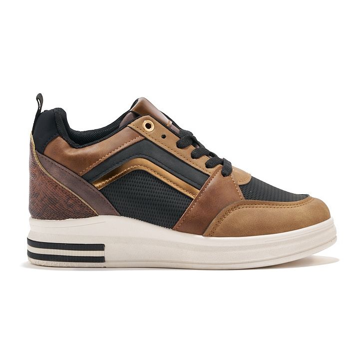 Detaljer: Bruna och svarta sneakers för kvinnor med en dold kil