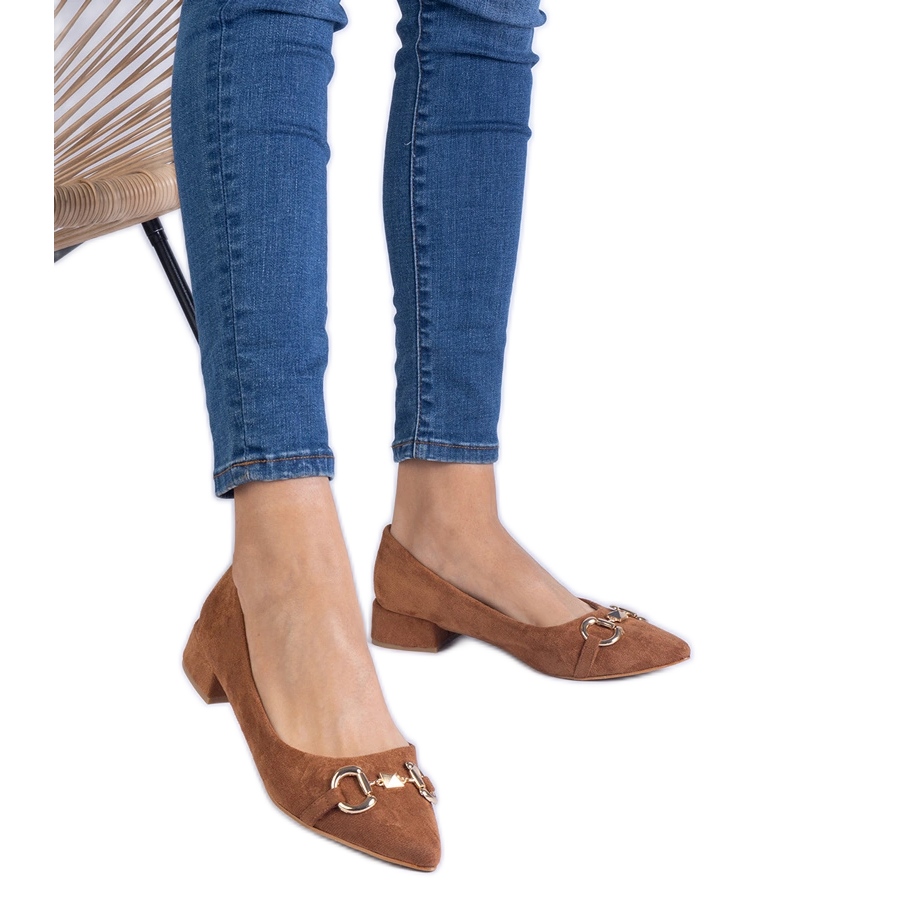 Bruna pumpar från Ekozamsz med en gyllene dekoration är det perfekta valet för varje elegant kvinna som värderar elegans och komfort. Dessa extremt mångsidiga kamelskor kommer perfekt att komplettera både dagliga och kvällstyliseringar.