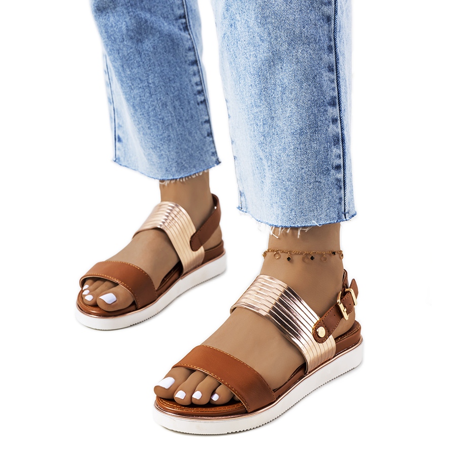 Detaljer: Bruna sandaler med metallic Larochelle-inlägg gyllene