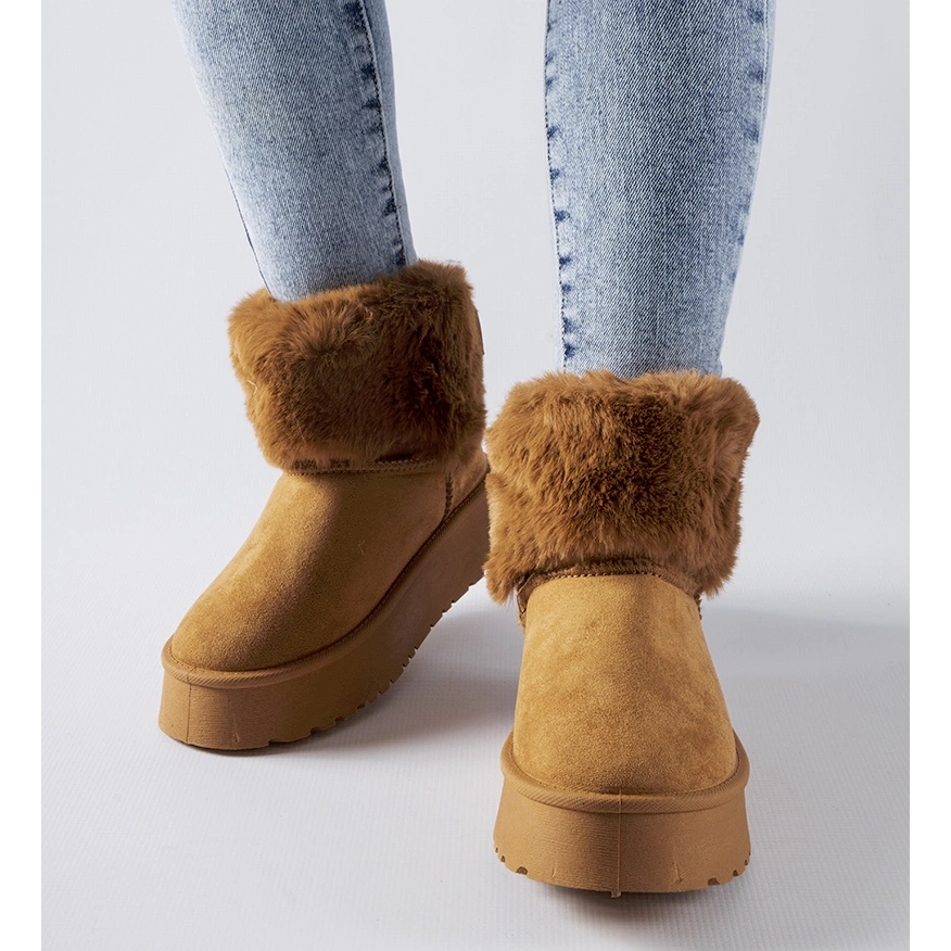 - Fashionable Cut: Camel Ecological Suede with päls och en båge gör att skorna perfekt kompletterar vinterstyliseringar - från avslappnad till mer feminin.