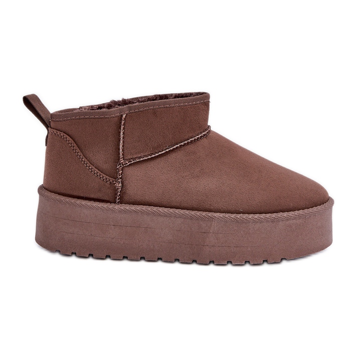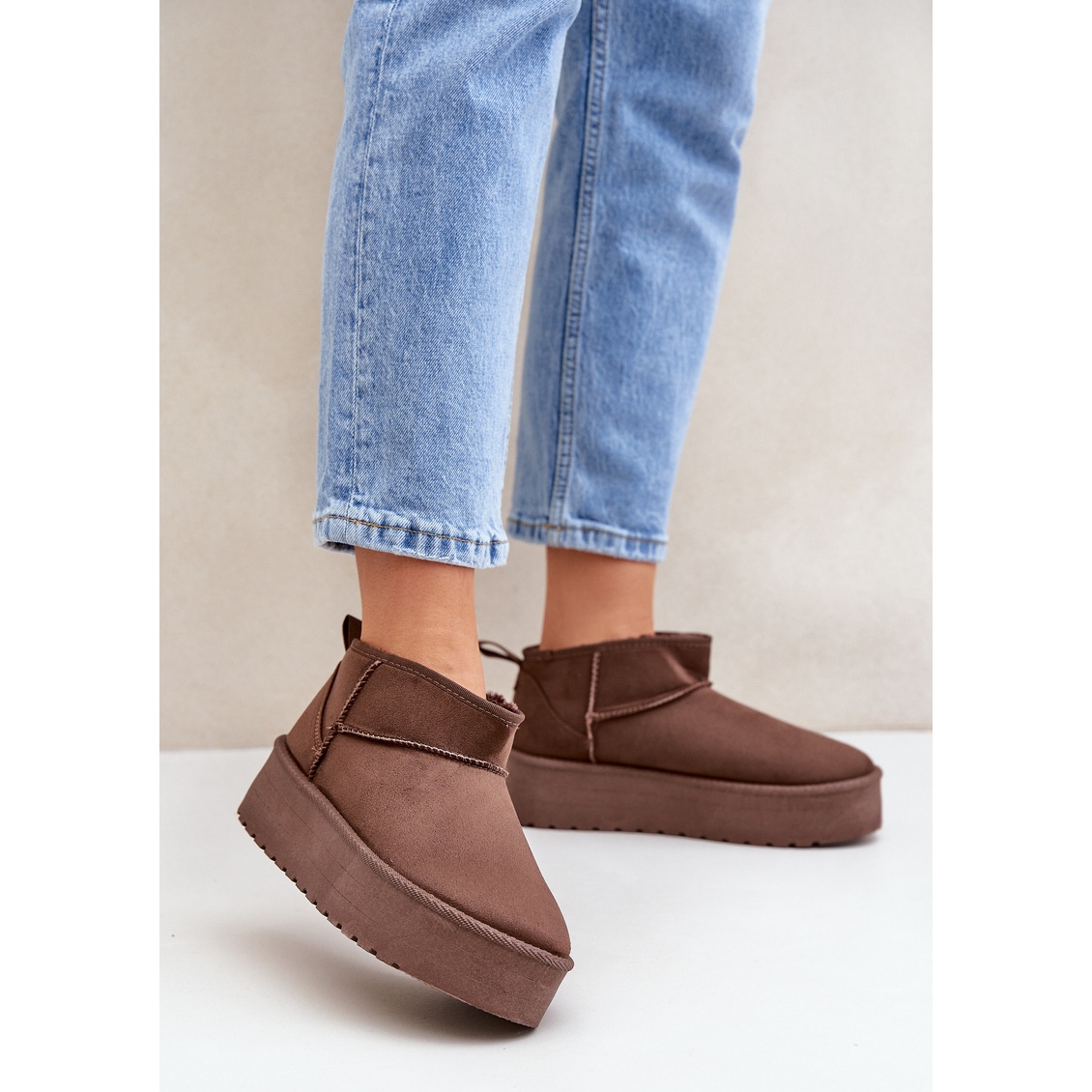 Upptäck den unika komforten och stilen tack vare låga snöstövlar på plattformen i en brun nyans. Dessa klassiska snöstövlar är det perfekta valet för kalla dagar och kombinerar fashionabla design med funktionalitet. Tillverkad av högkvalitativ eko -mocka erbjuder de inte bara en elegant utseende utan också den hållbarhet du behöver.