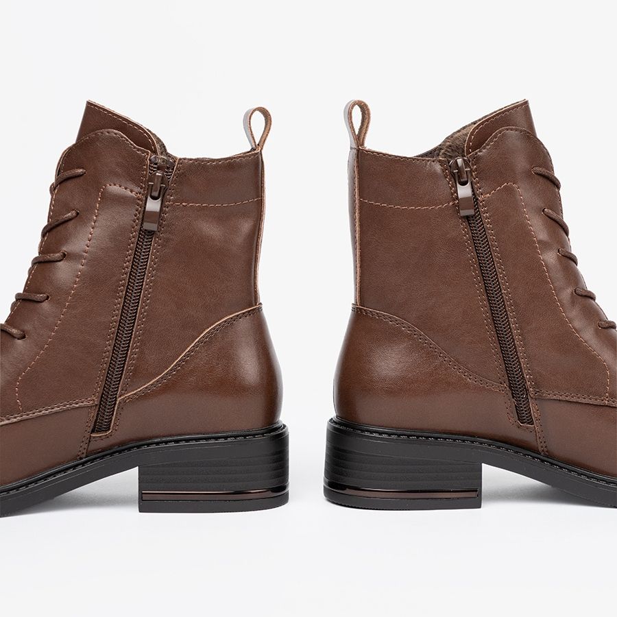 Detaljer: Bruna spets -up stövlar med en låg klack Sergio Leone