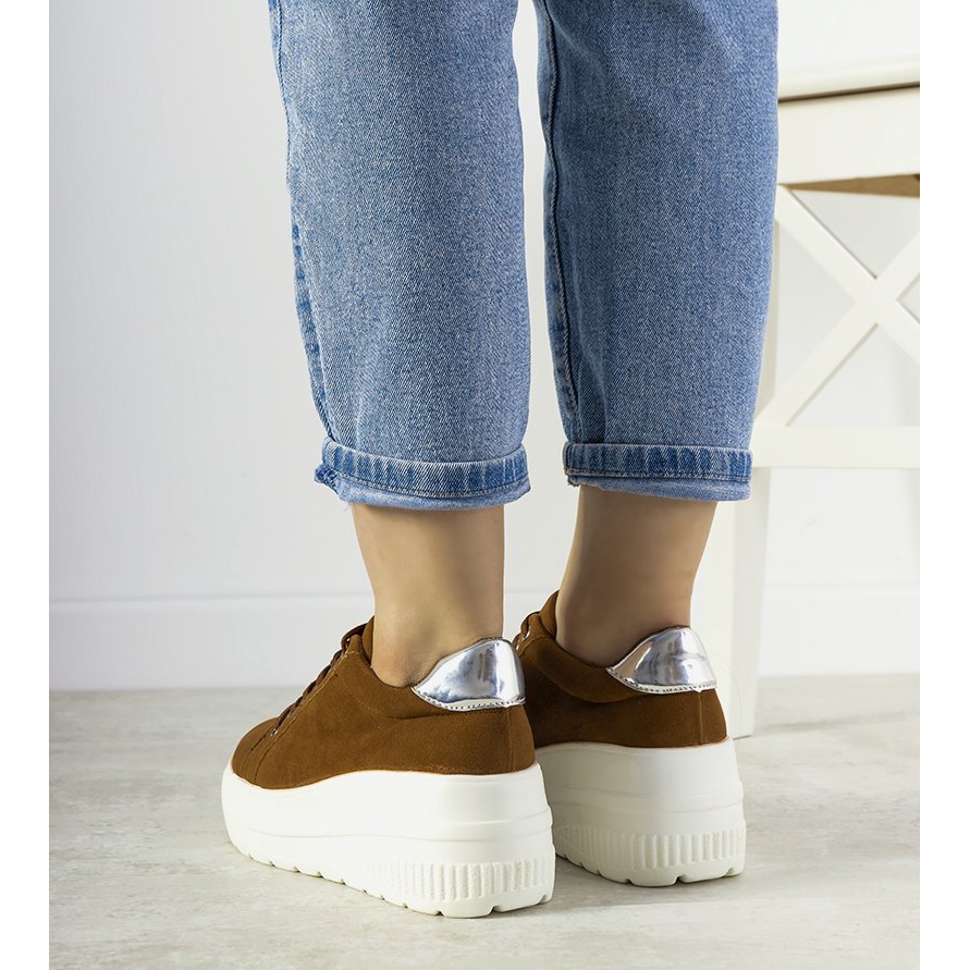 Dessa är bruna Rapter-sportsneakers med hög sula, som perfekt kommer att komplettera dina modestylingar. Perfekt för dig som värdesätter både komfort och modern design. Rapter-modellen kännetecknas av en lätt sula av högkvalitativ plast, vilket gör att du kan bära dem hela dagen utan att känna dig trött.