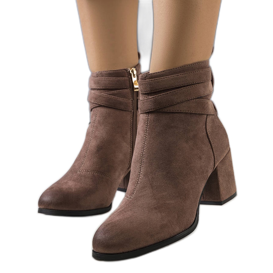 Klassiska Fletcher-stövlar är ett elegant och praktiskt komplement till höst-vinter-stiliseringar. Tillverkad av ekologiskt mocka läder i en nyans av taupe, inbäddat på en bekväm, låg stolpe (6 cm). Den övre når något ovanför vristen (höjden cirka 19 cm) - på insidan gör det lättare att ta på sig, och på utsidan tillsätt de dekorativa ränderna från samma material. Den något isolerade interiören ger komfort på svalare dagar.