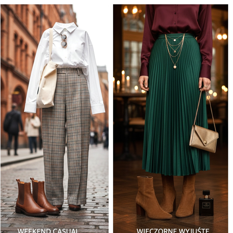 Avslappnad helg: Vida, rutiga byxor (så kallade rutiga byxor) i kombination med en vit T-shirt eller en enkel oxfordskjorta och bruna Chelseaboots – det här är en look inspirerad av Londons fashionabla gator, som fungerar lika bra för helgshopping som till ett café med vänner. En lång läderväska eller en canvasväska är den perfekta accessoaren.