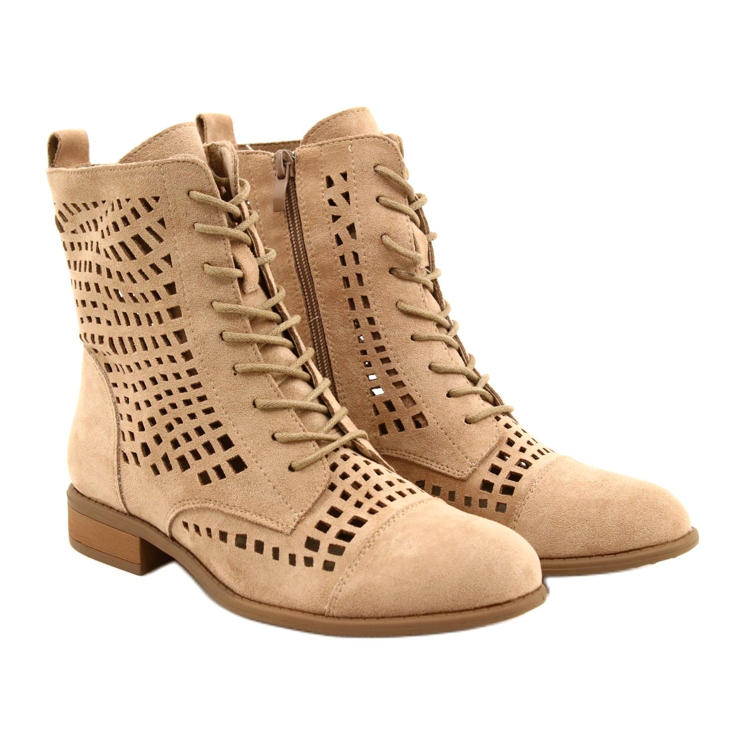 Den intressanta designen hos dessa arbetare kommer säkert att locka uppmärksamhet, och deras beige färg gör dem till ett perfekt komplement till många olika stilar. En ytterligare fördel är möjligheten till ett snabbt och enkelt köp tack vare användningen av både dragkedja och snörning, vilket möjliggör en perfekt passform till foten.