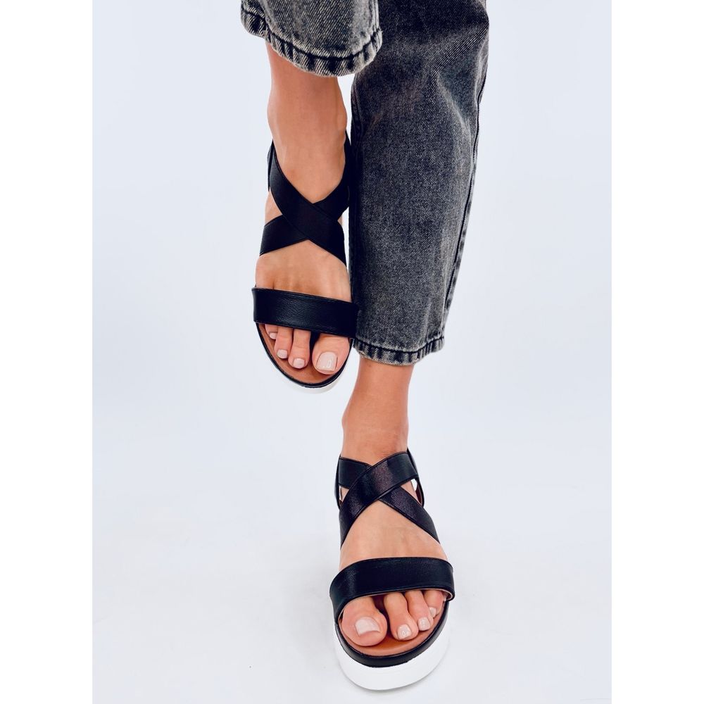 Ett fashionabelt, metalliskt mönster ger dem modernitet och får dem att smälta väl med olika stiliseringar - från avslappnad till mer elegant. Bristen på en näsa säkerställer frihet och lätthet, och slip -upp -strukturen gör det lättare att ta på sig och ta bort. Caden svarta sandaler är perfekta för både sommardagar och under kvällsutflykter.