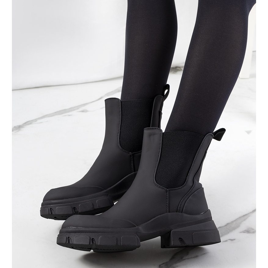 Vi presenterar eleganta Carlos ankelboots, som kommer att vara ett perfekt komplement till din garderob under övergångsperioden. Dessa imponerande skor med en traktorliknande, tjock sula och en rundad tå är en kombination av stil och komfort. Chelsea-kängornas design gör dem lätta att ta på, och det elastiska materialet på båda sidor gör att det är lätt att fästa foten.