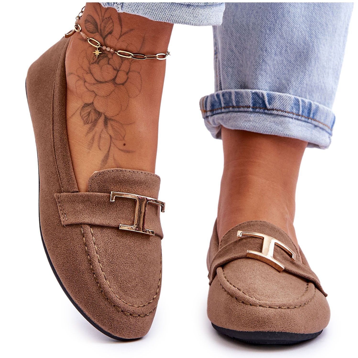 Klassisk slip -in carly mockasins - beige (khaki) med en prydnad i gyllene färg